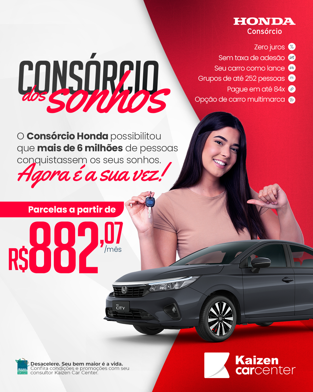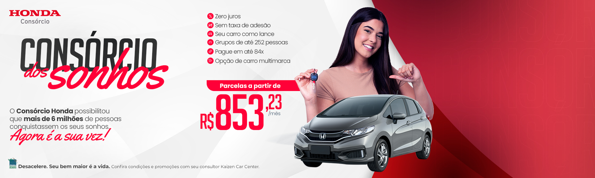 Realize o sonho do carro novo ou seminovo com o Consórcio Honda na Kaizen RS, o jeito mais inteligente, econômico e seguro de planejar sua compra sem juros.